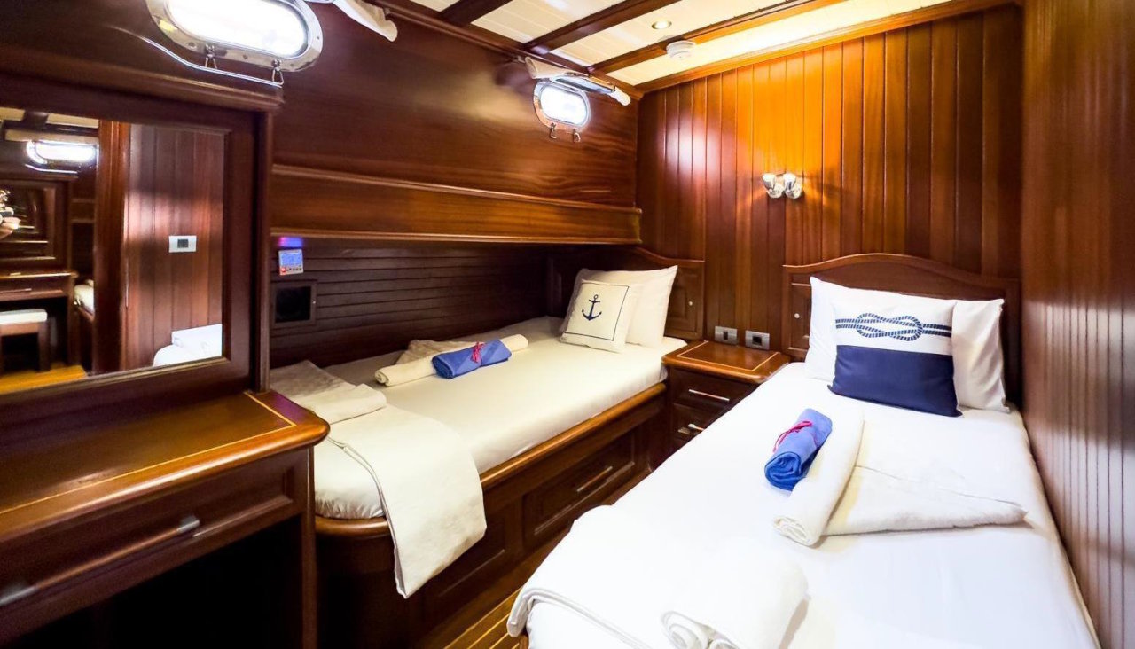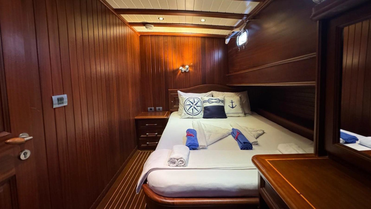 Sunrise 2 is a comfortable and well maintenanced gulet and can accommodate up to 8 guests in 4 cabins. Each cabin has en suite bathroom and air-conditioning.
